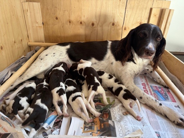 Hanvalpar födda den 7 mars, efter friska och jaktstarka linjer. Registrerade i SKK och leveransklara den 2 maj.